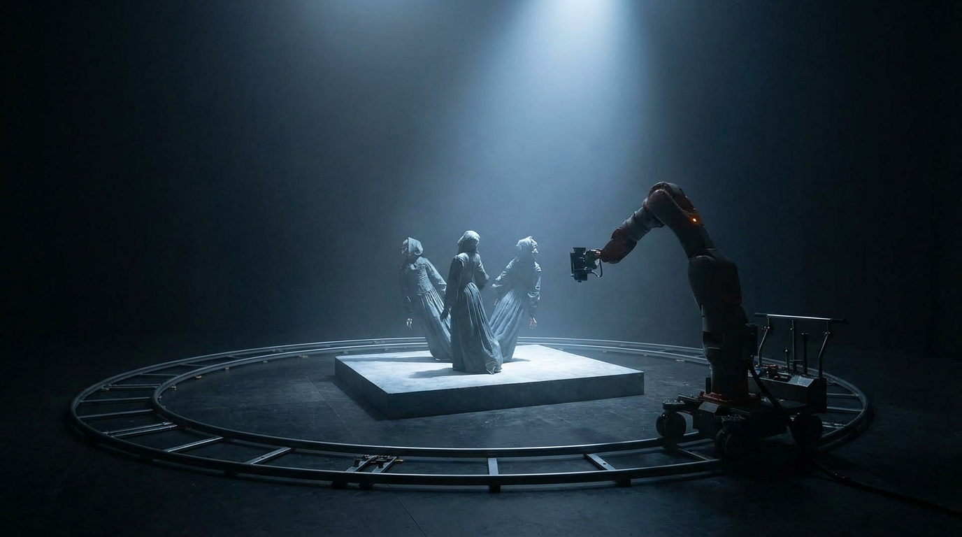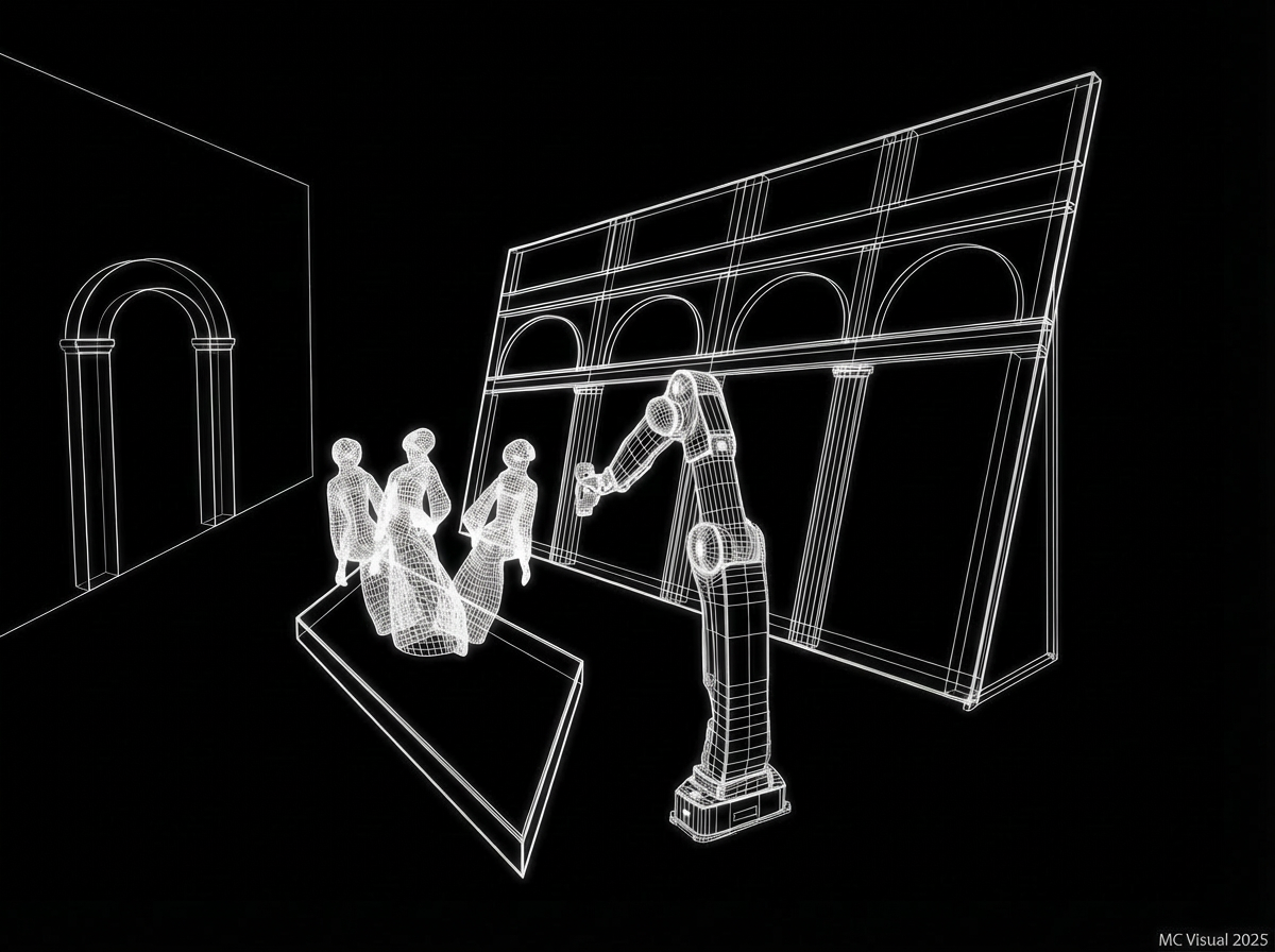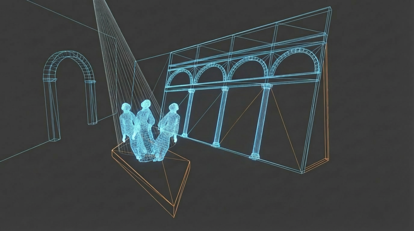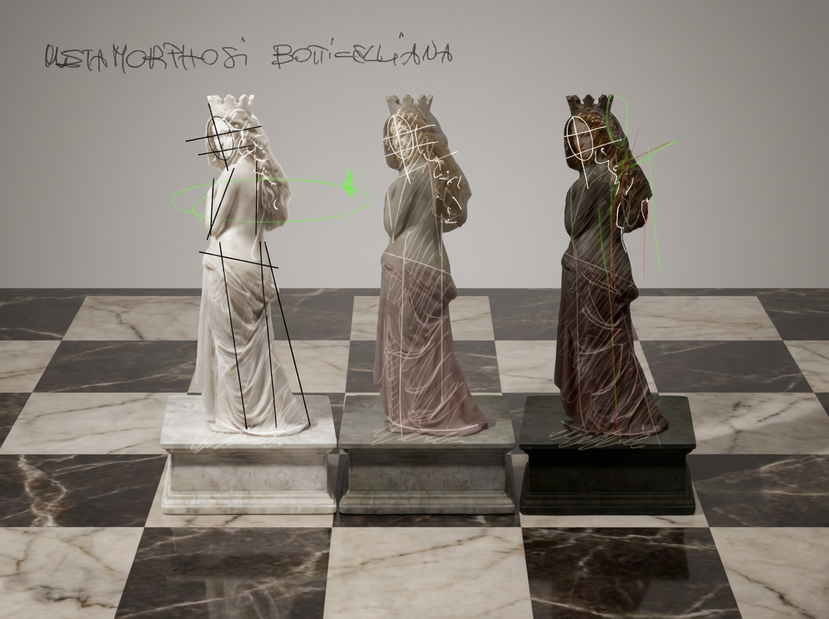 FACE CAPTURE in ambiente neutro 3D con attori che interpretano i personaggi dell'Opera di Sandro Botticelli: LA NASCITA DI VENERE.