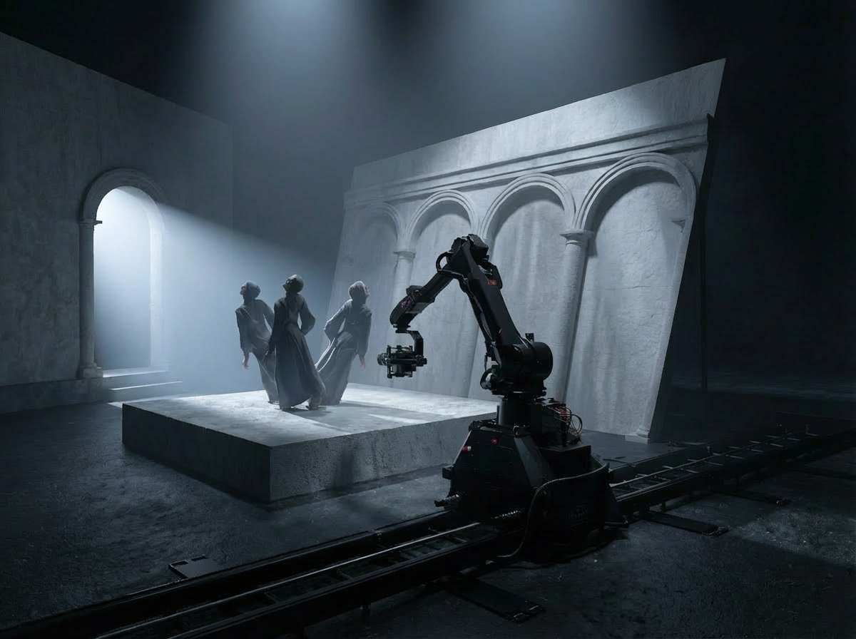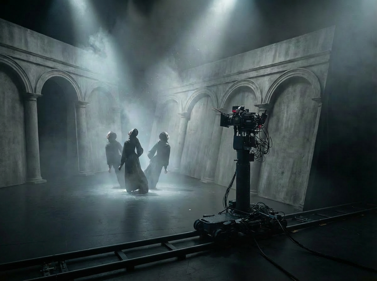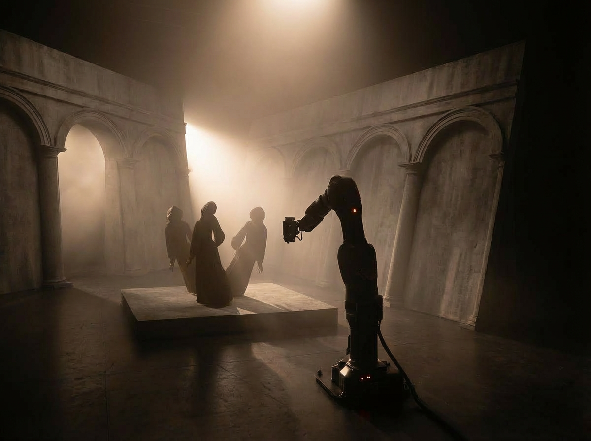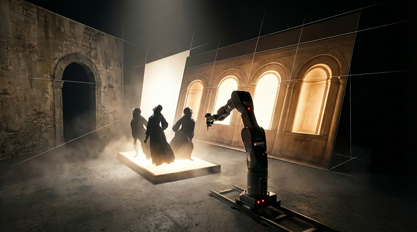 FACE CAPTURE in ambiente neutro 3D con attori che interpretano i personaggi dell'Opera di Sandro Botticelli: LA NASCITA DI VENERE.