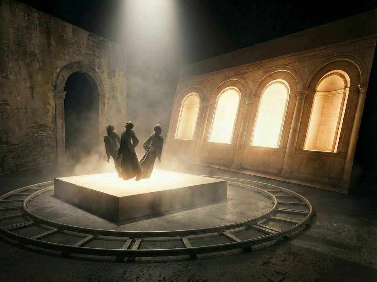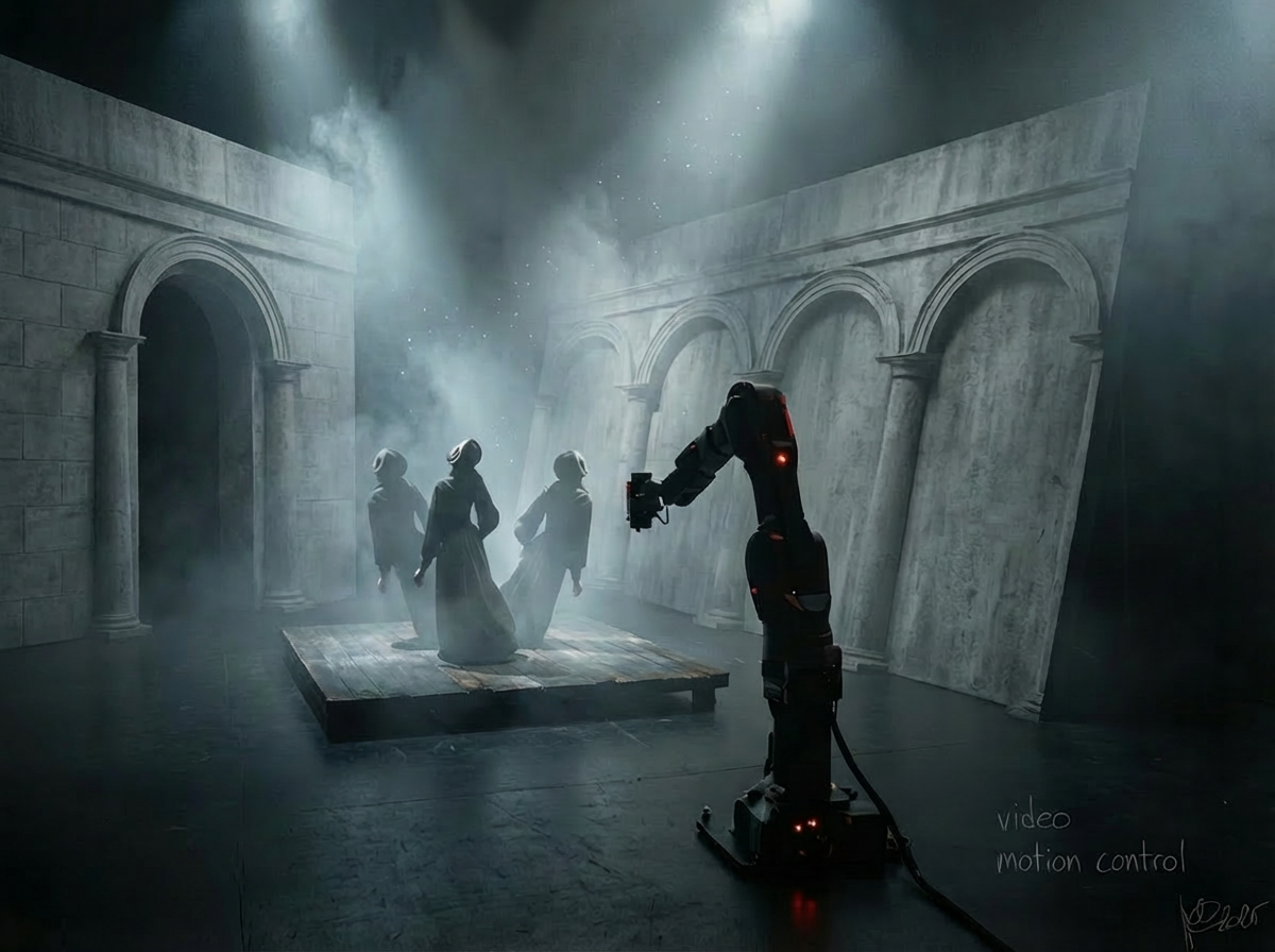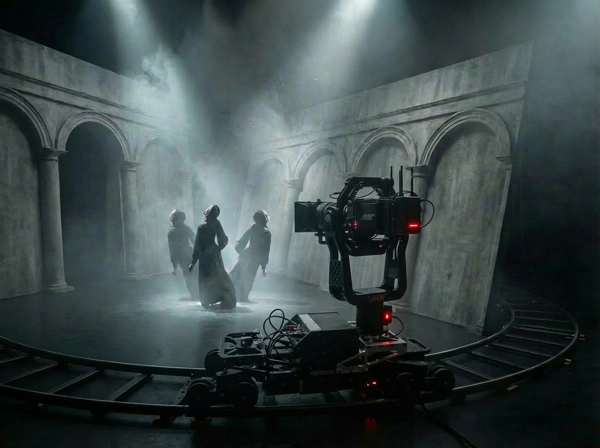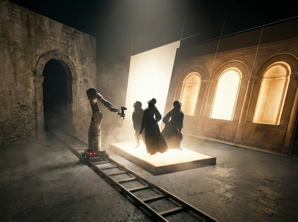 FACE CAPTURE in ambiente neutro 3D con attori che interpretano i personaggi dell'Opera di Sandro Botticelli: LA NASCITA DI VENERE.