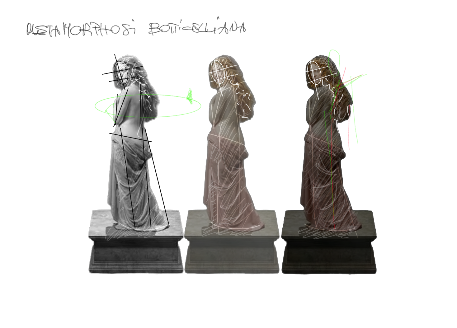 COMPOSIZIONE DI QUADRI SINGOLI 3D WIREFRAME ALGORITMI PARTICELLARI. ⎸ Esempio 02: METAMORFOSI DI UNA ROSA. DALL'OPERA "LA NASCITA DI VENERE" DI BOTTICELLI