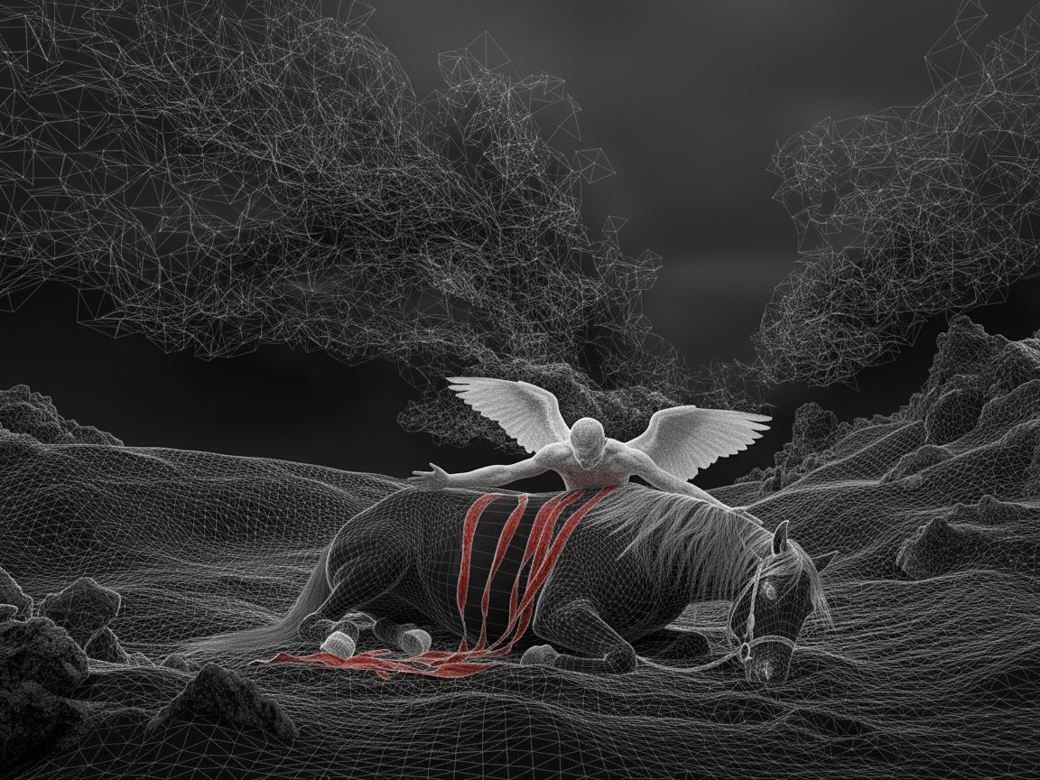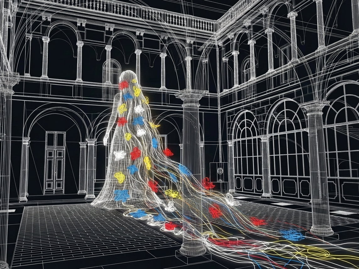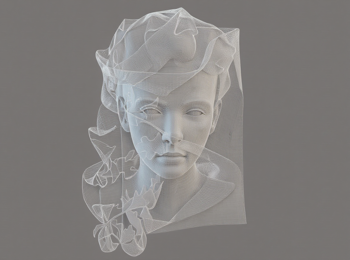 COMPOSIZIONE DI QUADRI SINGOLI 3D WIREFRAME ALGORITMI PARTICELLARI. ⎸ Esempio 01: UNA ROSA SOFFIATA DAL VENTO DALL'OPERA "LA NASCITA DI VENERE" DI BOTTICELLI